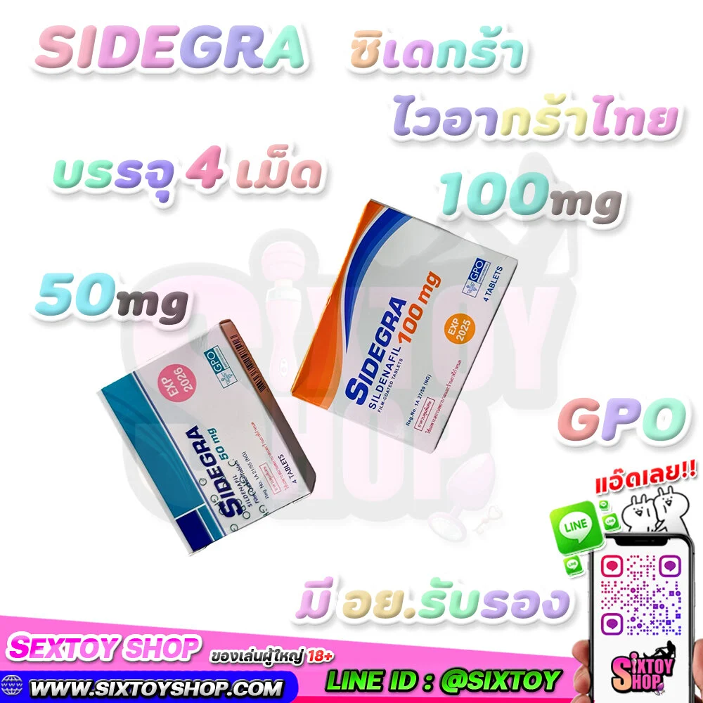 ซิเดกร้า (Sidegra®) หรือไวอากร้าไทย ผลิตโดยองค์การเภสัชกรรม(GPO) ใช้รักษาหย่อนสมรรถภาพทางเพศ นกเขาไม่ขัน อวัยวะเพศไม่แข็งตัว น้องชายไม่สู้ ในราคาย่อมเยา ซึ่งตัวยาในsidegra คือ ซิลเดนาฟิล (Slidenafil Citrate) มีจำหน่าย2 ขนาด คือ 100mg. และ 50mg. บรรจุแผงๆละ 4 เม็ด ซึ่งเป็นยาควบคุมพิเศษ ที่มีอย.รับรองถูกต้อง และมีใบสั่งยาจากแพทย์เท่านั้น ซึ่งเหมาะกับผู้ชายที่มีอายุตั้งแต่ 18-65 ปี ที่มีสุขภาพสมบูรณ์ ตัวยาเดียวกับ Viagra ของบริษัท Pfizer ประเทศอเมริกา ซิเดกร้าของแท้