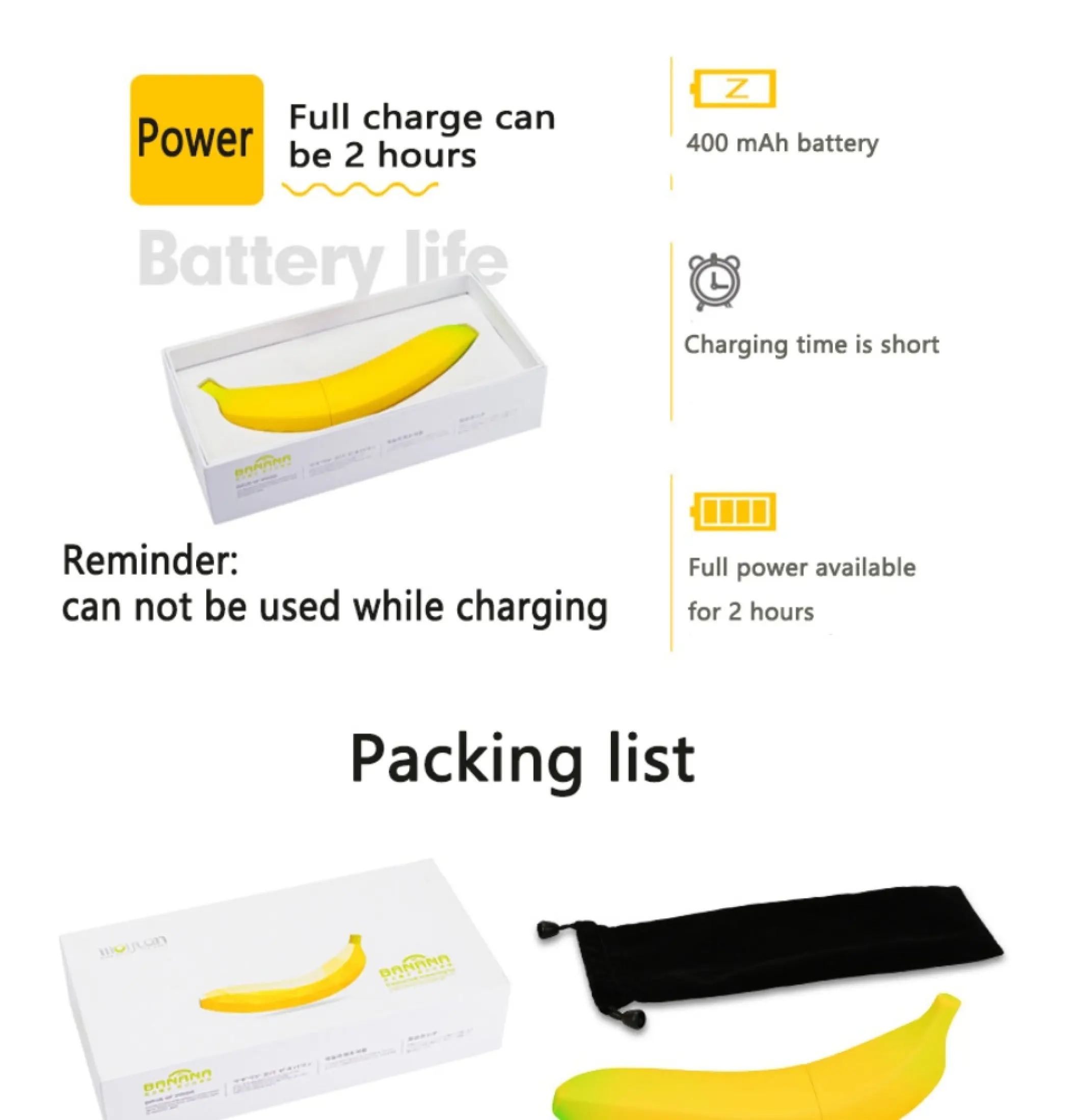 ดิลโด้ กล้วยหอม ที่มีลักษณะภายนอกเหมือนกล้วยหอมสามารถปลอกเปลือกกล้วยออกนั้นก็จะเป็นดิลโด้รูปทรงอวัยวะเพศชาย เหมาะแก่การใช้งานกับคู่รัก และยังสามารถสั่นปรับจังหวะได้ 7 ระดับกันเลยทีเดียว ให้ฟิลลิ่งที่แตกต่างกว่าที่เคยสัมผัส และ ยังมาพร้อมระบบชาร์จผ่าน USB กันน้ำได้ สะดวกสบายในการใช้งานอีกด้วย
